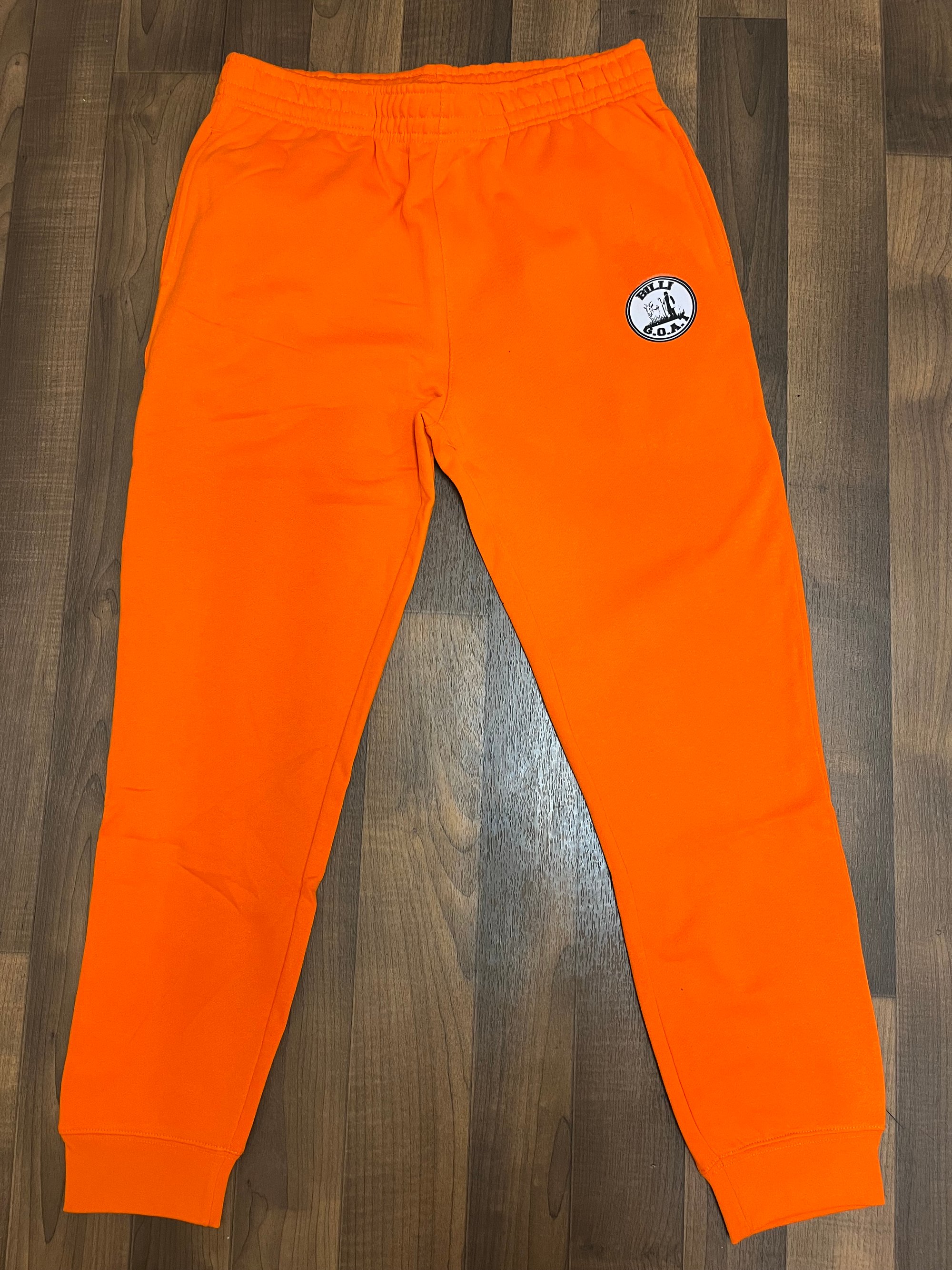 Quality orange sweatpants with the Billigoat Logo on the pocket