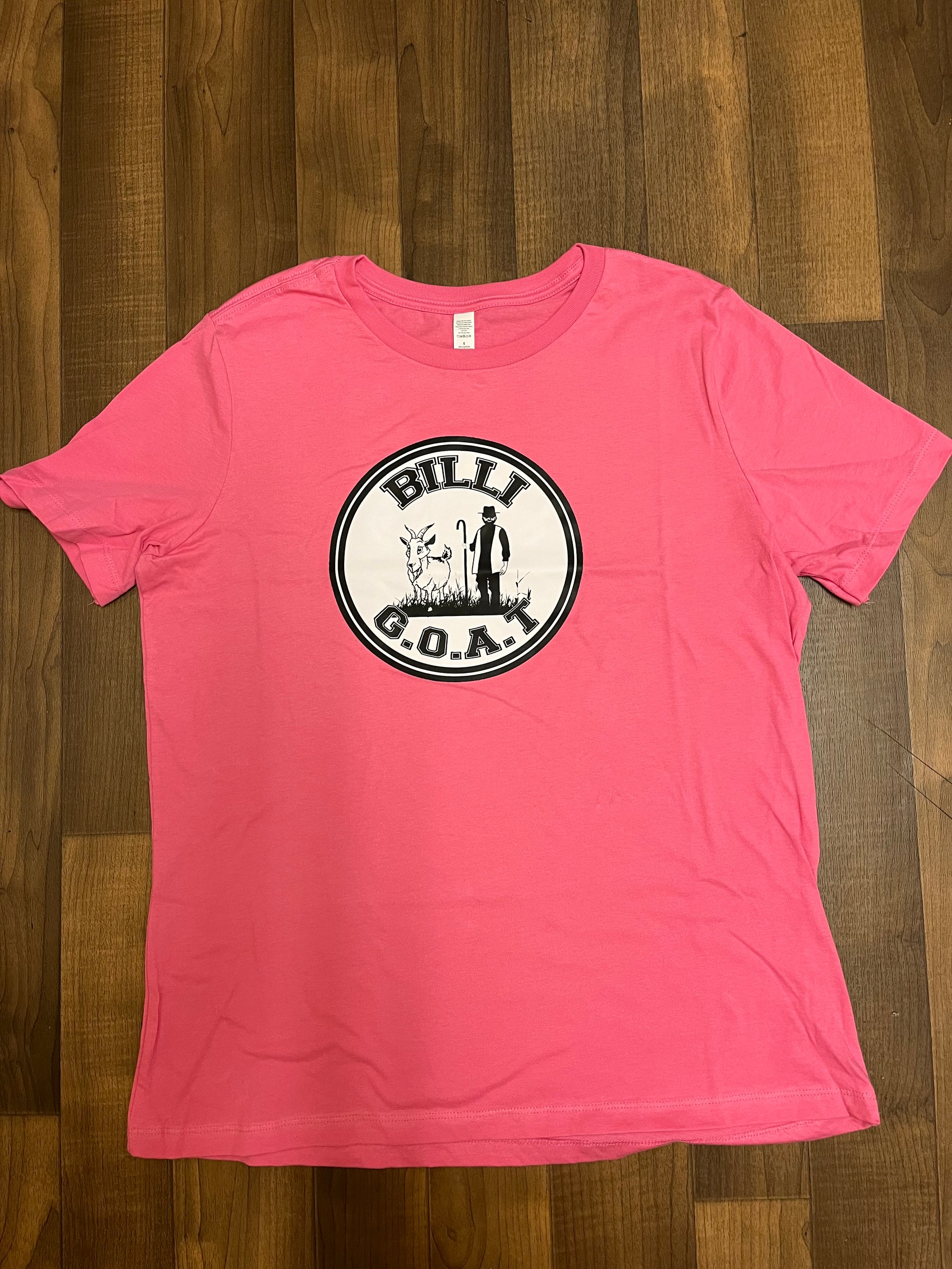 WOMENS pink quality t-shirt with the big Billigoat logo
